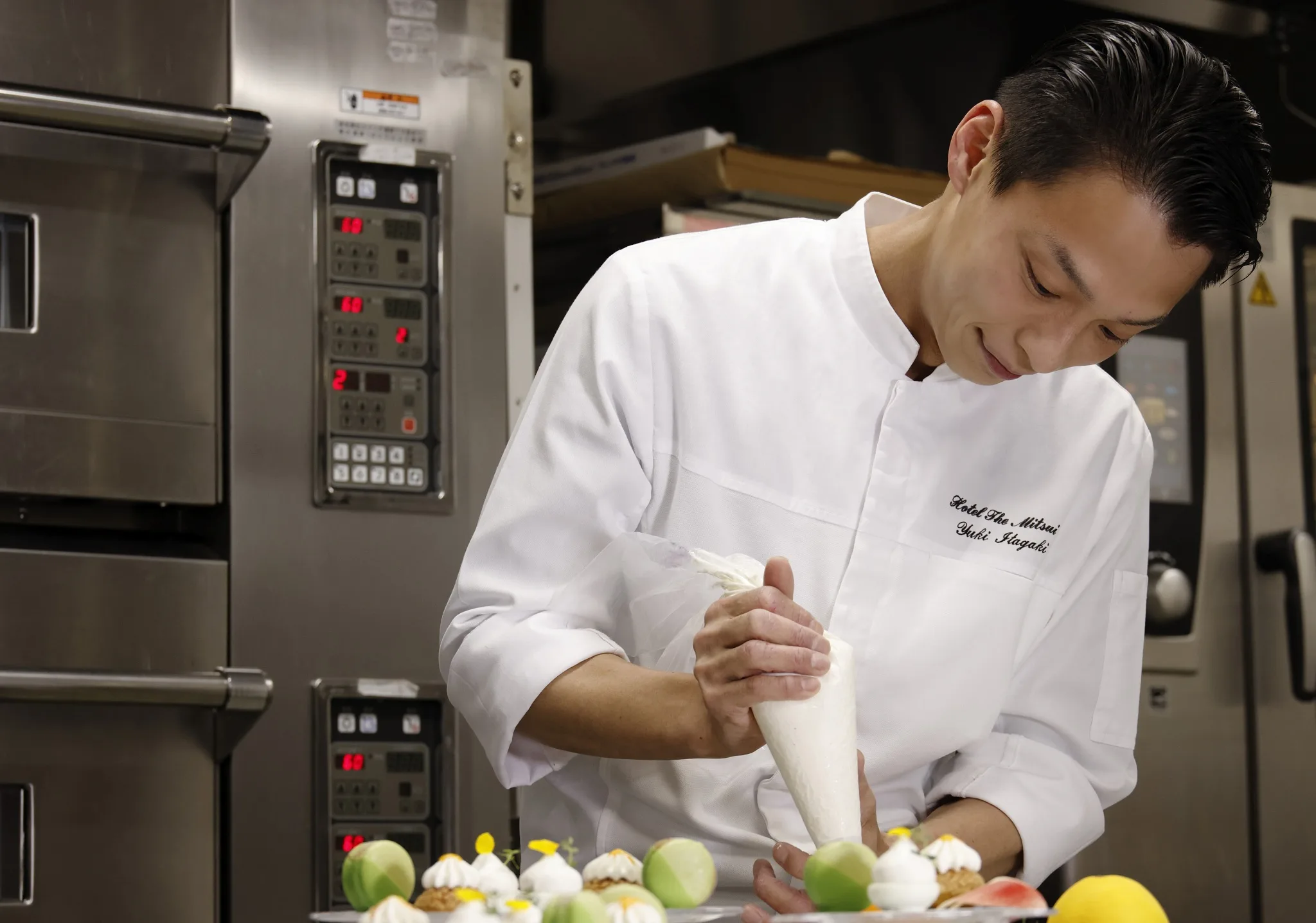He honed his craft at renowned hotels and pâtisseries in the Tokyo metropolitan area, and in 2013 was appointed Head Pastry Chef at a Michelin one-star restaurant. After joining Mandarin Oriental, Tokyo in 2015, he was promoted to Pastry Sous Chef the following year, leading the creation of restaurant desserts, wedding cakes, and boutique pâtisserie items. In 2020, he took on the role of Pastry Chef at HOTEL THE MITSUI KYOTO, where he continues to create desserts that celebrate the essence of each ingredient, beautifully uniting flavor, aesthetics, and storytelling.