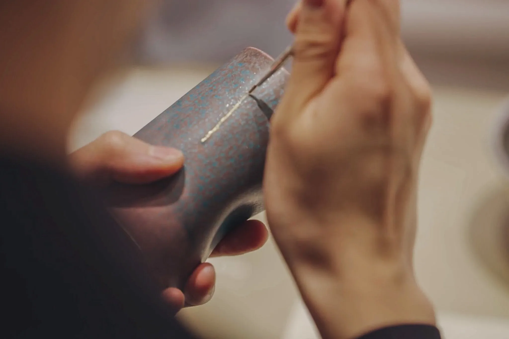 Broken tableware from our restaurants is repaired by Kyoto artisans using the traditional art of kintsugi (gold joinery).