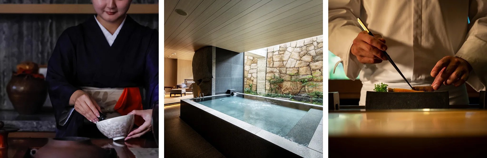 * 「茶居」でのエクスペリエンスおよびプライベート温泉のご利用には、事前のご予約が必要です。ご希望の時間帯に沿えない場合もございますので、あらかじめご了承ください。