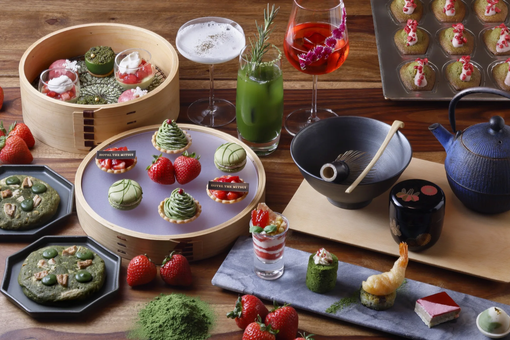 オリジナル抹茶「縁紫 ENISHI」をゲストご自身で点てる一杯から始まる「宇治抹茶&京都産いちご アフタヌーンティー」。柳桜園謹製の宇治抹茶と京都産のいちごをふんだんに用いたスイーツやセイボリーをご堪能いただけます。抹茶の風味を活かしたモンブランをはじめ、抹茶といちごのハーモニーが楽しめる焼きたてのマドレーヌなど、味わいはもちろん見た目にもこだわった多彩な味わいをお楽しみください。