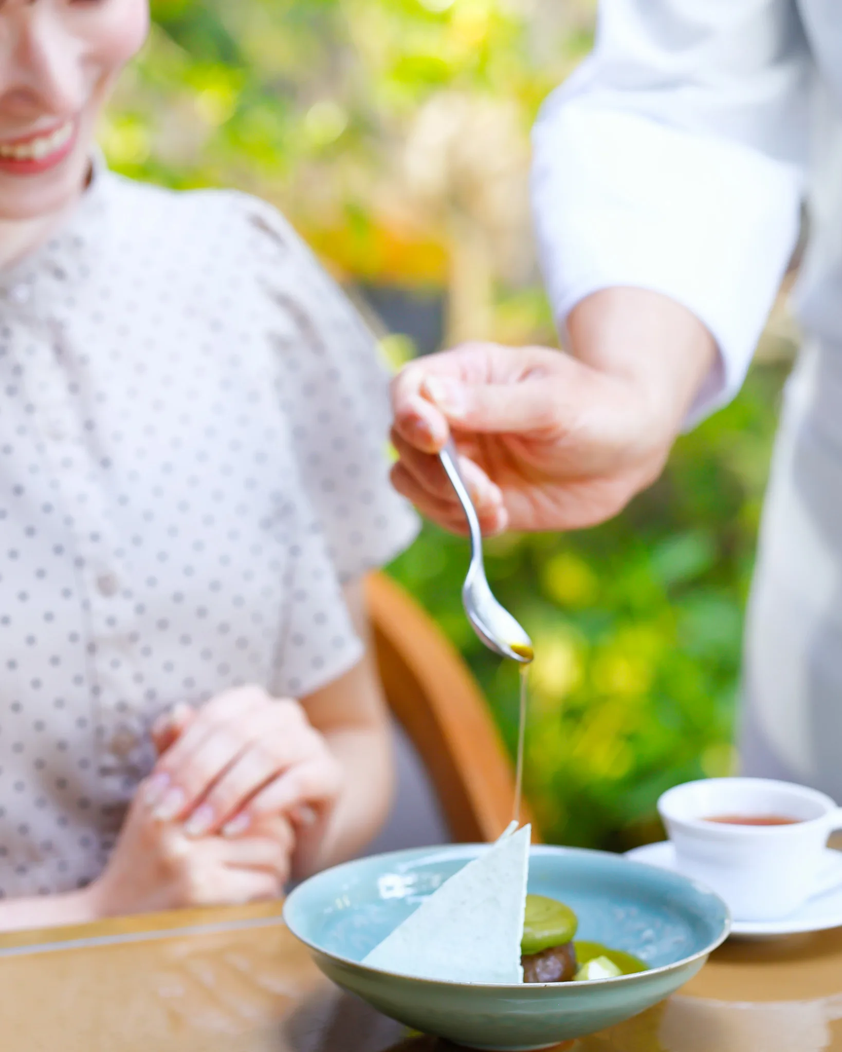 季節の素材をふんだんに用い、ストーリー性豊かなスイーツの数々を目の前で創りあげるデザートフルコースをご堪能いただけます。
