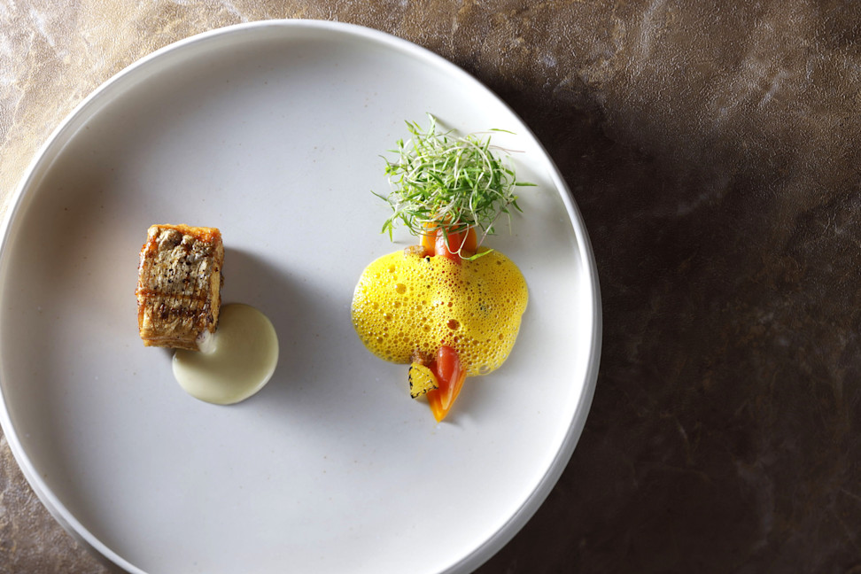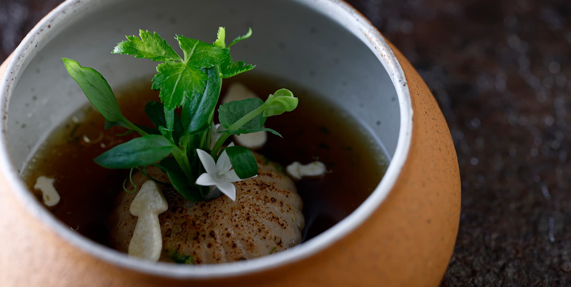 そんな浅野シェフが京都の水と出会い、新たに京都でつくるフレンチの「出汁(だし)」。京都ならではの季節の素材と京都の水に浅野シェフの技術が都季のお料理へと昇華します。目前に広がる水盤を眺めながら京都の季節を感じるひとときをお過ごしください。